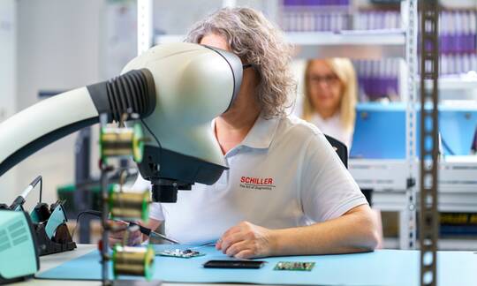 Working at SCHILLER AG means being part of a team that is passionate about developing innovative medical devices and distributing them worldwide. Our solutions combine the highest quality with reliability – always with a focus on saving lives. We create an environment where commitment, responsibility and team spirit are paramount. Together, we make a contribution that really counts.