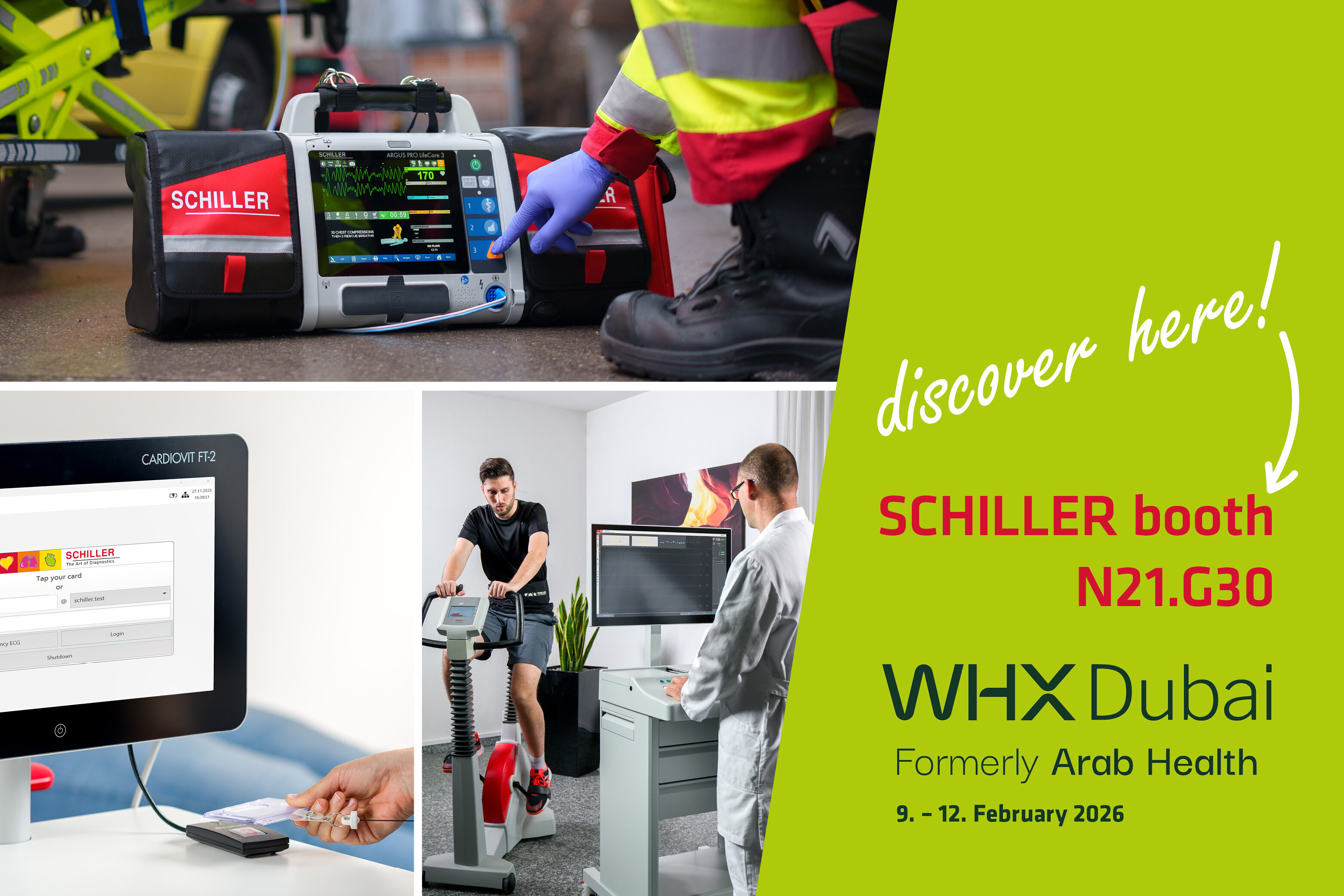 The World Health Expo in Dubai (formerly Arab Health) has become one of SCHILLER's most important trade fairs, attracting visitors from all over the world. Next week, it's that time again. The World Health Expo will take place in Dubai from 9th to 12th February 2026. SCHILLER will be fortifying its sales network and presenting its latest solutions to visitors at stand N21.G30.